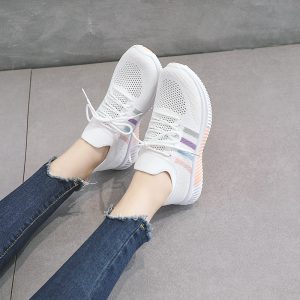 Summer colorful striped low-top sneakers, casual and versatile white shoes, fly-woven mesh mesh shoes, flat-soled students Upper material: fly knitted […]